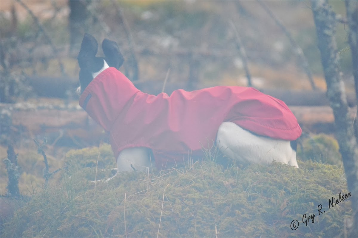 Bålkos :) Whippeten i rød regnjakke er en venninne sin. Kira (Edelherb Haba Haba)